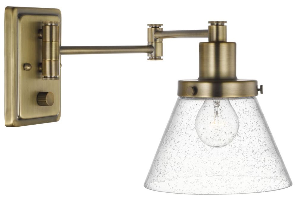- The light fixture's signature adjustable arm is coated in a vintage brass finish and makes this wall light a favorite choice for when you want to read your favorite novel before bed.