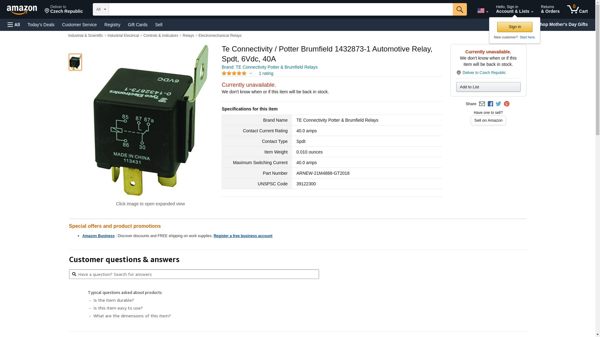 | Manufacturer | TE Connectivity Potter & Brumfield Relays |