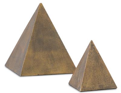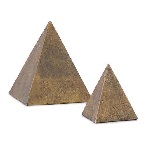 Currey and Company 1200-0274 Mandir - 8" Pyramid (Set of 2), Antique Brass Finish