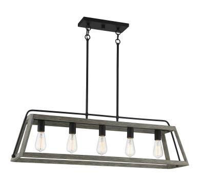 You can feel eco-proud with the Hasting Collection featuring Noblewood, a repurposed wood from Indonesia. Measuring 42" long x 10" wide x 12" high, the five-light linear chandelier is accented by a metal bracket in an Iron finish. Ample illumination for over a long dining table or island is provided by five 60-watt Edison-base bulbs. The adjustable hanging height from 12 to 66 inches adds to the versatility.