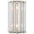 Designed by Libby Langdon for Crystorama, the Elliot collection of wall lights combines traditional crystal with distinctly contemporary design. Clear crystal glass tubes are arranged across the face of this wall scone, framed by polished nickel finish accents. Within, two candelabra bulbs shine like candlelight, their illumination diffused through the crystalline glass. A scallop pattern displays itself across the bottom, ensuring the Elliot collection is pleasing to the eye, no matter the angle.