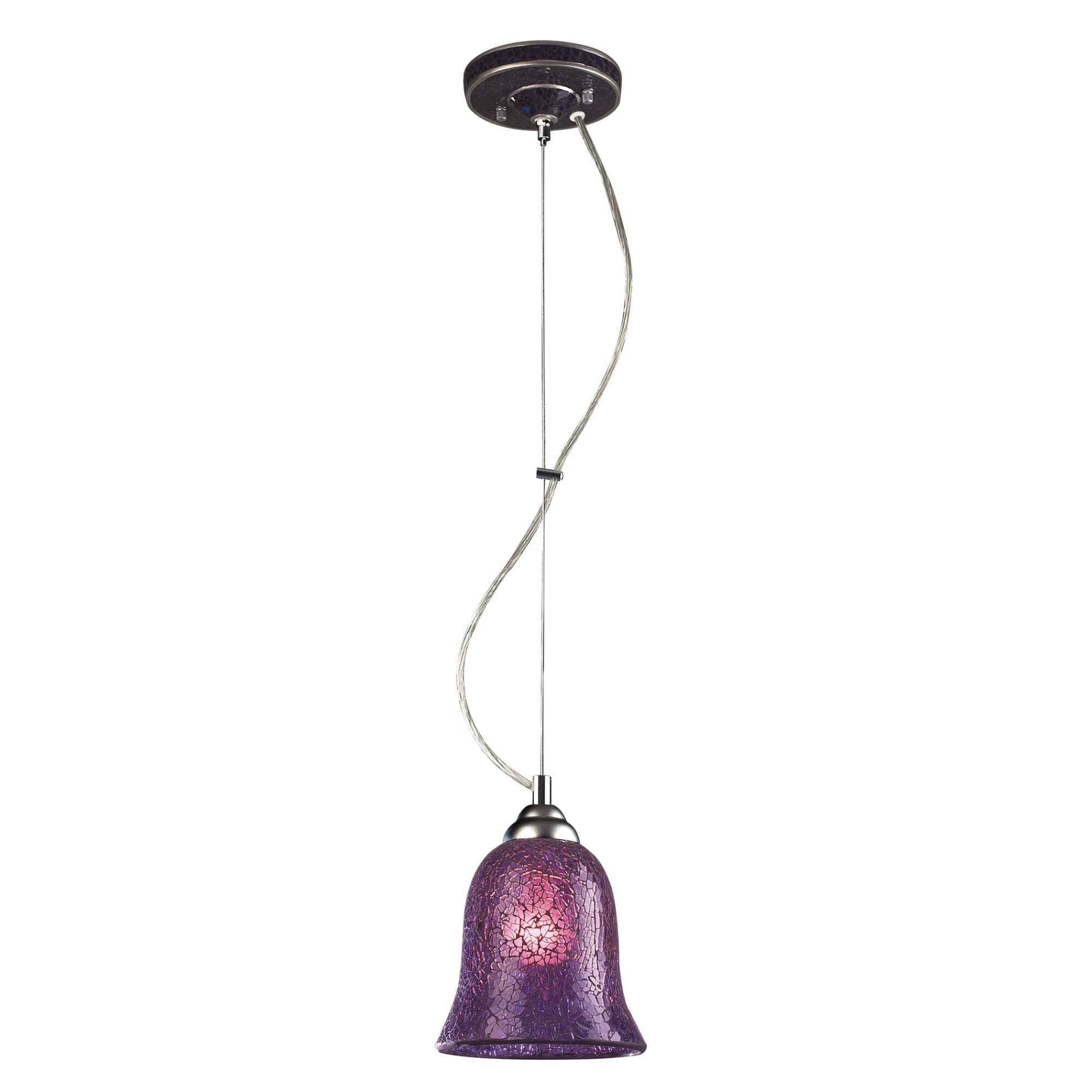 1305-1PLC ELK Lighting Bellisimo Collection 1-Light Bell Pendant In Satin Silver With A Purple Crackled