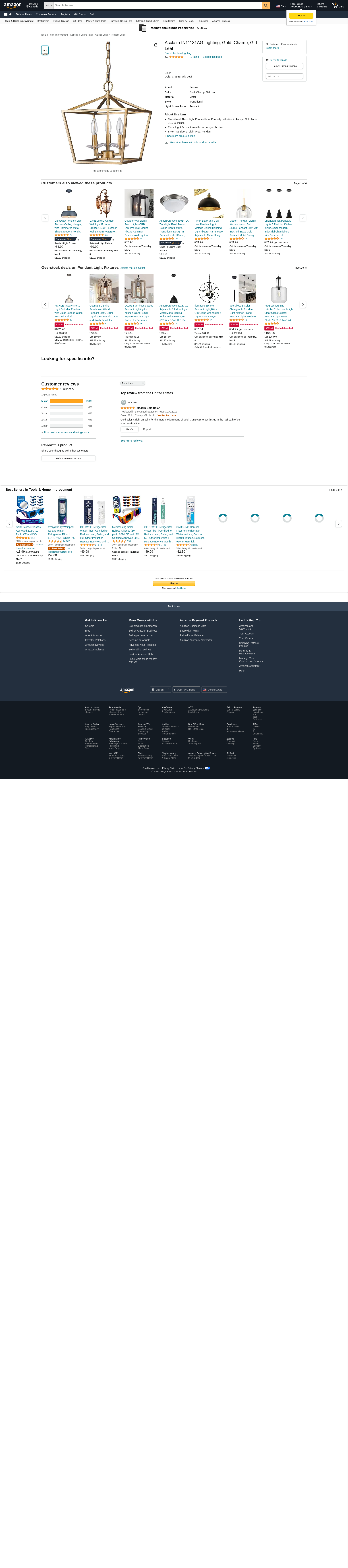 Acclaim IN11131AG Lighting, Gold, Champ, Gld Leaf