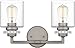 - Contemporary two-light metal wall sconce from the Jaspar collection by Quoizel.