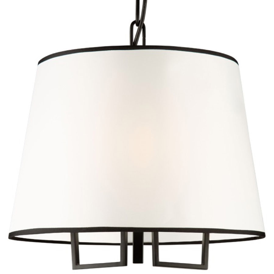 From the S&C design firm, with strict direction from Steven Sabados, the Coco Collection features a transitional frame which has flat type arms. The frame is finished in a rich matte black, and has harvest brass accents. The hardback white linen shades are complimented with upper and lower black trims to finish off the design. Make a statement in your home. Coco Collection Lifetime warranty on electrical components, 5 Year warranty on LED components and finish Dimmable, sloped ceiling compatible, adjustable height ETL Listed, EZ-Link Smart Device compatible E12 bulb base, bulb not included Indoor/Dry Black Finish. Designer: Steven Sabados / Room Recommendation: Kitchen/Island/Dining Room / Mounting Direction: Ambient / Canopy Included: Yes / Canopy Diameter: 5.00 / Sloped Ceiling Adaptable: Yes / Chain Length: 72.00 / Dimable: Yes / Shade Included: Yes / Shade Dimensions: 15.8 x 11.