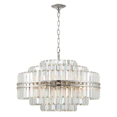Create a lasting impression with the Hayes collection. Doubling as a piece of art, the Hayes is comprised of tiered multi-faceted crystal secured by a polished nickel steel frame. Its sleek polished finish modernizes its surroundings while creating a focal point for a room.