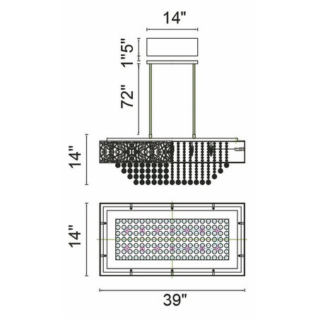 Giving your dining area a romantic aura with this Eternity 14 Light Chandelier. This oversized glam chandelier features a 39 inch rectangular drum shade in chrome-finish. Cascading from the inside of the shade are clear crystal beads that shimmers like twinkling stars. This is the decorative light fixture you need to create a chic home that doesn't look overdone. Lighting is jewelry for the home, and there is the perfect piece for every room. This fixture is done in a beautiful chrome finish which could be the missing piece to lighten up and fall in love with your space all over again.<br/><br/>Features :<br/><br/>- Feel confident with your purchase and rest assured. This fixture comes with a one year warranty against manufacturers defects to give you piece of mind that your product will be in perfect condition.<br/>- Dimensions: H 14" x W 14" x L 39"<br/>- Chrome Finish - G9 Bulb Not Included - Indoor (Dry Location)<br/>- cETLus Approved<br/>- Includes Assembly Instructions and Hardware<br/>- Compatible With Standard Low Voltage Dimmer.<br/><br/>Specifications :<br/><br/>- Number of Lights : 14<br/>- Voltage : 120v<br/>- Bulb Type : G9<br/>- Warranty Description : One year warranty against manufacturers defect<br/>- Installation Type : Hardwired<br/>- Material : Metal.