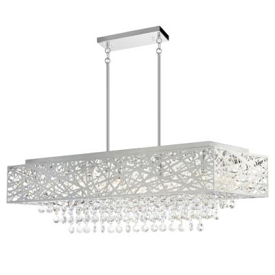 Make your space look refined and exquisite by adding this Eternity 16 Light Chandelier. Looking both on-trend and timeless, this drum shade chandelier with crystal beads dripping from the inside of a laser-cut rectangular frame will provide your interiors with beautiful, twinkling lights. Expect this 46 inch light fixture to add a sense of chicness to your interiors.Lighting is jewelry for the home, and there is the perfect piece for every room. This fixture is done in a beautiful chrome finish which could be the missing piece to lighten up and fall in love with your space all over again.<br/><br/>Features :<br/><br/>- Feel confident with your purchase and rest assured. This fixture comes with a one year warranty against manufacturers defects to give you piece of mind that your product will be in perfect condition.<br/>- Dimensions: H 14" x W 14" x L 46"<br/>- Chrome Finish - G9 Bulb Not Included - Indoor (Dry Location)<br/>- cETLus Approved<br/>- Includes Assembly Instructions and Hardware<br/>- Compatible With Standard Low Voltage Dimmer.<br/><br/>Specifications :<br/><br/>- Number of Lights : 16<br/>- Voltage : 120v<br/>- Bulb Type : G9<br/>- Warranty Description : One year warranty against manufacturers defect<br/>- Installation Type : Hardwired<br/>- Material : Metal.