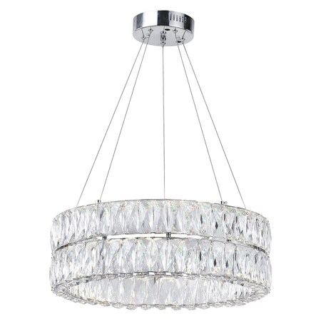 The Madeline 2 Ring LED Chandelier will lend a glamorously dramatic atmosphere to your space. This down chandelier has two crystal-laden rings of 20 inch diameter. One is directly on top of the other and both forms a 6 inch thick glittering halo of light. This circle-shaped light fixture is sure to add softness, flow, and positive energy to your home.Lighting is jewelry for the home, and there is the perfect piece for every room. This fixture is done in a beautiful chrome finish which could be the missing piece to lighten up and fall in love with your space all over again.<br/><br/>Features :<br/><br/>- Feel confident with your purchase and rest assured. This fixture comes with a three years warranty against manufacturers defects to give you piece of mind that your product will be in perfect condition.<br/>- Dimensions: H 6" x W 20" x L 20"<br/>- Chrome Finish - Integrated LED Bulb Included - Indoor (Dry Location)<br/>- cETLus Approved<br/>- Includes Assembly Instructions and Hardware<br/>- Compatible With Standard Low Voltage Dimmer.<br/><br/>Specifications :<br/><br/>- Number of Lights : 1<br/>- Voltage : 120v<br/>- Bulb Type : Integrated LED<br/>- Warranty Description : Three years warranty against manufacturers defect<br/>- Installation Type : Hardwired<br/>- Material : Metal.