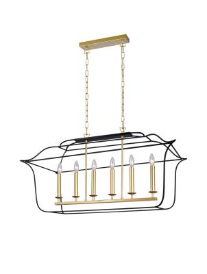 - Undeniably an illuminating art piece, the Tudor 6 Light Chandelier is more than just a light source. Six modern candelabras in satin gold finish are housed in a black open frame suspending from a luxe satin gold adjustable chain. Perfect for adding a touch of luxury and style to any dining room or kitchen, this island/pool table light will cozy up your space effortlessly.