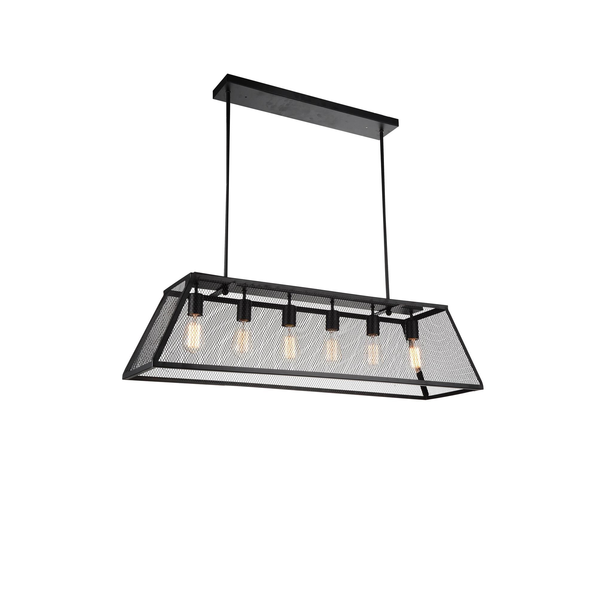 Bring a rustic inchdustrial twist to a contemporary space with the addition of the Macleay 6 Light Chandelier. This down chandelier is designed with a 42 inch metal mesh shade in black. This light fixture works especially well on expansive rooms and neutral open concept floor plans with white and light wood tones. Expect the combination of the dark finish and the diffused light to create a welcoming mood and ambiance to your space.Lighting is jewelry for the home, and there is the perfect piece for every room. This fixture is done in a beautiful black finish which could be the missing piece to lighten up and fall in love with your space all over again.<br/><br/>Features :<br/><br/>- Feel confident with your purchase and rest assured. This fixture comes with a one year warranty against manufacturers defects to give you peace of mind that your product will be in perfect condition.<br/>- Dimensions: H 12" x W 12" x L 42"<br/>- Black Finish - E26 Bulb Not Included - Indoor (Dry Location)<br/>- cETLus Approved<br/>- Includes Assembly Instructions and Hardware<br/>- Compatible With Standard Low Voltage Dimmer.<br/><br/>Specifications :<br/><br/>- Number of Lights : 6<br/>- Voltage : 120v<br/>- Bulb Type : E26<br/>- Warranty Description : One year warranty against manufacturers defect<br/>- Installation Type : Hardwired<br/>- Material : Metal.