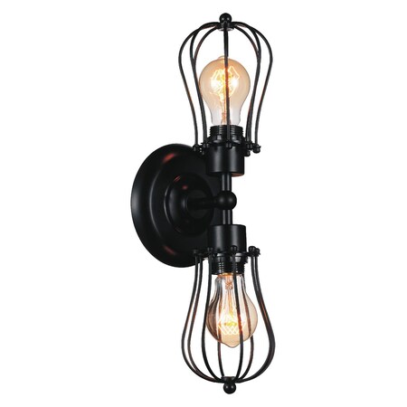Marrying form and function, the Tomaso 2 Light Wall Sconce in Black displays a rustic appeal in a truly industrial finish. The exposed bulbs and the metal cage frame that holds the bulbs complement each other and deliver a look that's practical yet decorative. This wall-mounted light source will look perfect in open-concept spaces as well as in compact spaces. Pair this with a dimmer switch for mood Light and ambiance under your control.Lighting is jewelry for the home, and there is the perfect piece for every room. This fixture is done in a beautiful black finish which could be the missing piece to lighten up and fall in love with your space all over again.<br/><br/>Features :<br/><br/>- Feel confident with your purchase and rest assured. This fixture comes with a one year warranty against manufacturers defects to give you peace of mind that your product will be in perfect condition.<br/>- Dimensions: H 20" x W 5" x L 6"<br/>- Black Finish - E26 Bulb Not Included - Indoor (Dry Location)<br/>- cETLus Approved<br/>- Includes Assembly Instructions and Hardware<br/>- Compatible With Standard Low Voltage Dimmer.<br/><br/>Specifications :<br/><br/>- Number of Lights : 2<br/>- Voltage : 120v<br/>- Bulb Type : E26<br/>- Warranty Description : One year warranty against manufacturers defect<br/>- Installation Type : Hardwired<br/>- Material : Metal.