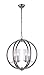 Its style is a pared back take on that trendy orbital chandelier.The Elton 6 Light Chandelier will impress you with its unassuming beauty. Held by an adjustable chain is an orbit like pendant in satin nickel finish. Sitting inside are six candelabra bulbs on cylindrical glass shades. This 19 inch orbit chandelier will fit rustic upscale or modern rustic interiors.