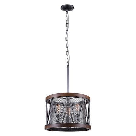 This Parsh 3 Light Chandelier is the perfect lighting option to pair with your barn door and exposed wood beams. Exuding a down-to-earth feel, this drum shade chandelier in pewter casts light that is cozy and warm. The metal mesh drum shade measures 16 inches in diameter and is perfectly finished by a brown wood grain frame.Lighting is jewelry for the home, and there is the perfect piece for every room. This fixture is done in a beautiful pewter finish which could be the missing piece to lighten up and fall in love with your space all over again.<br/><br/>Features :<br/><br/>- Feel confident with your purchase and rest assured. This fixture comes with a one year warranty against manufacturers defects to give you piece of mind that your product will be in perfect condition.<br/>- Dimensions: H 22" x W 16" x L 16"<br/>- Pewter Finish - E26 Bulb Not Included - Indoor (Dry Location)<br/>- cETLus Approved<br/>- Includes Assembly Instructions and Hardware<br/>- Compatible With Standard Low Voltage Dimmer.<br/><br/>Specifications :<br/><br/>- Number of Lights : 3<br/>- Voltage : 120v<br/>- Bulb Type : E26<br/>- Warranty Description : One year warranty against manufacturers defect<br/>- Installation Type : Hardwired<br/>- Material : Metal.