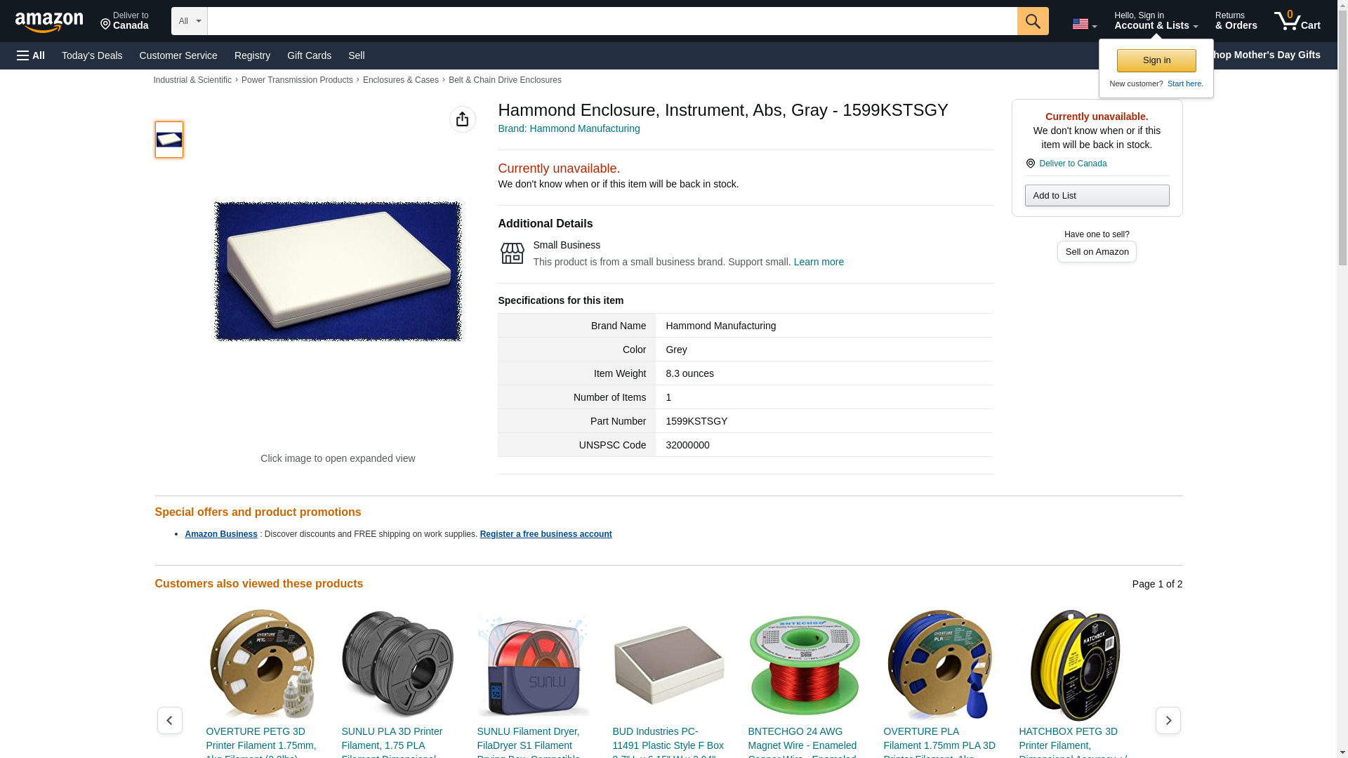 ![]() Walker Industrial | 1599KSTSGY | 1 | 3 to 5 Days | 1 | 1 @ $10.84 |