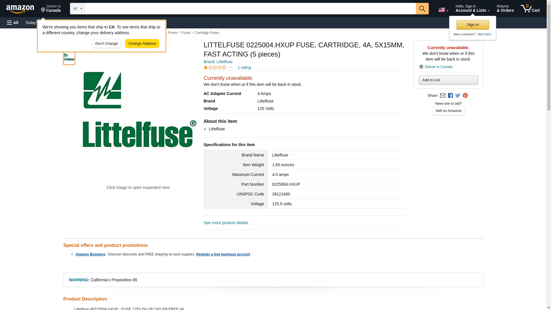 | Lighting Supply | LITTELFUSE-0225004.HXUP | 1 | 100 | 1 @ $95.00 | |