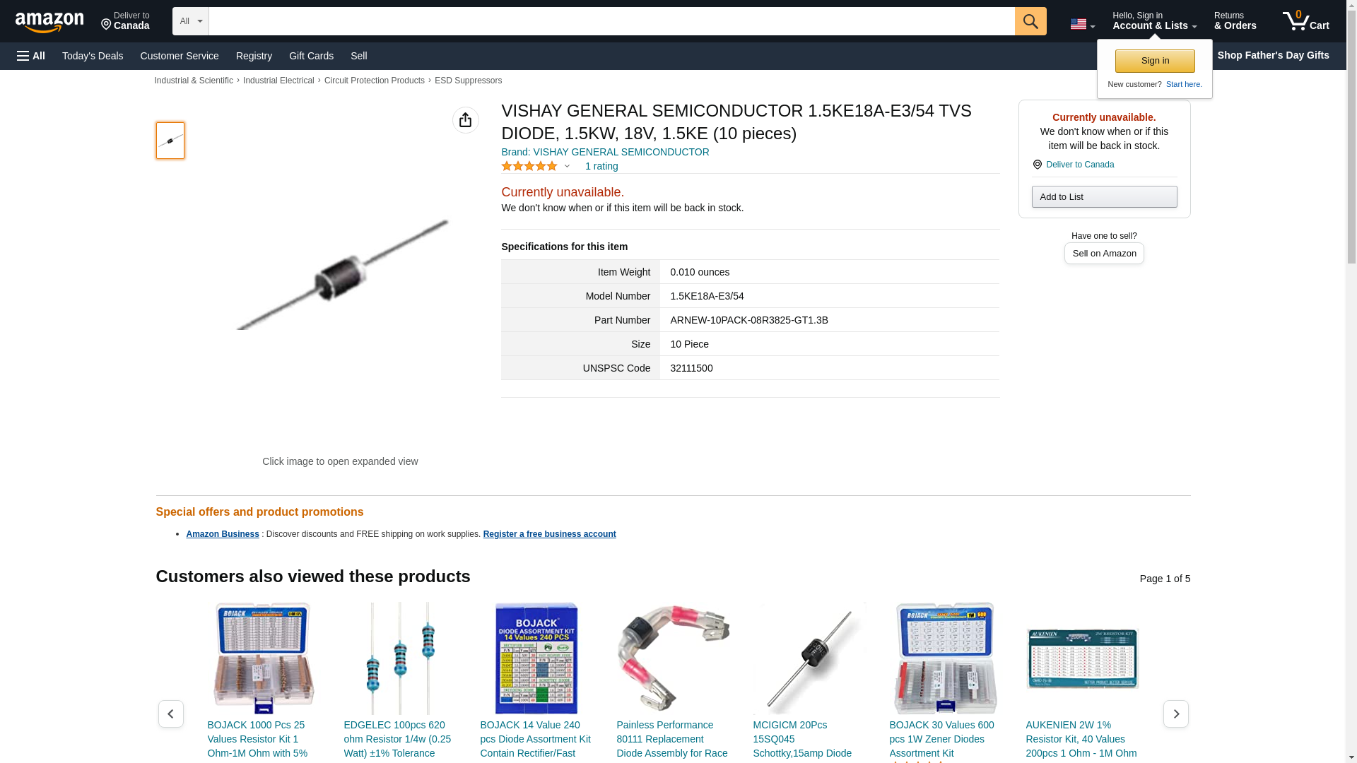 | 1Source | 1.5KE18A-E3/54 | 1 | 1 | ||