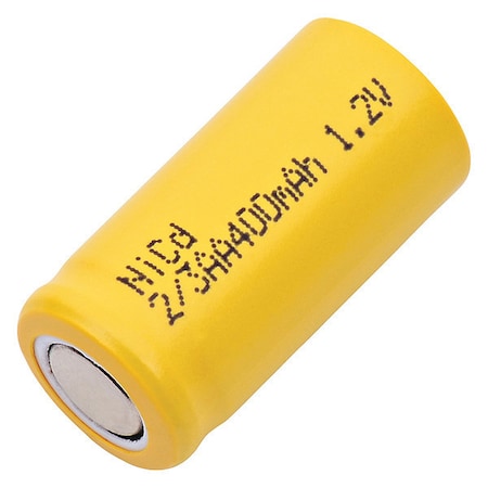NICKEL CADMIUM-NICAD RECHARGEABLE BATTERY; Battery Voltage:1.2V; Battery Technology:Nickel Cadmium; Battery Capacity:400mAh; Battery Size Code:2/3AA; Battery Terminals:Flat Top; External Diameter:14.5mm; External Height:25.2mm RoHS Compliant: NA