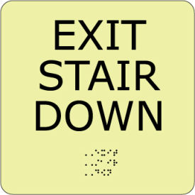 Sign, EXIT STAIR DOWN, 8X8, GLOW ADA, ENGRAVED SIGNS