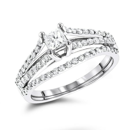 Luxurman Ladies 14K Unique Natural 0.6 Ctw Diamond Engagement Ring Set For Her (White Gold Size 6.5)