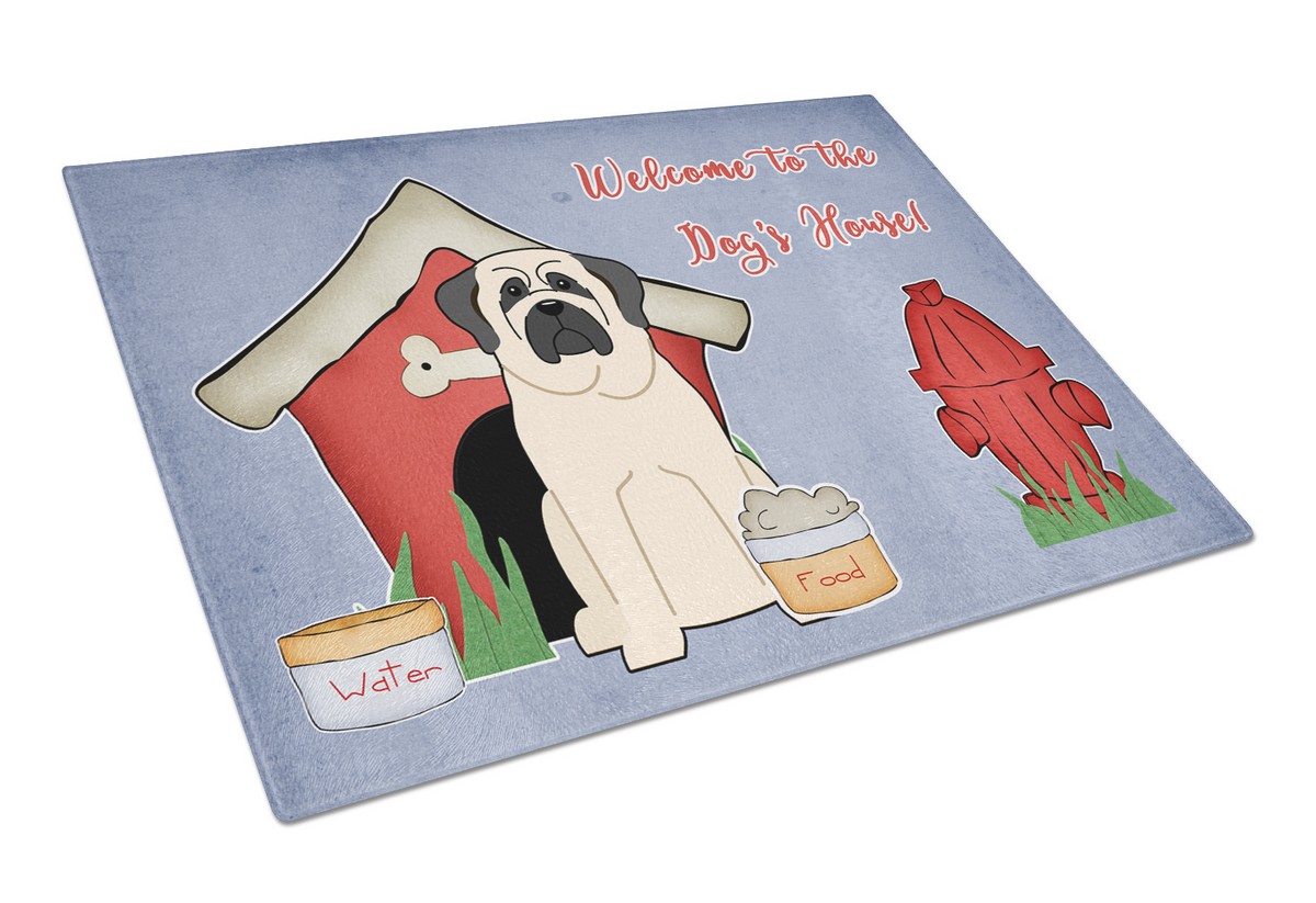 Caroline's Treasures BB2771LCB Dog House Collection Mastiff White Glass Cutting Board Large Decorative Tempered Glass Kitchen Cutting and Serving Board Large Size Chopping Board