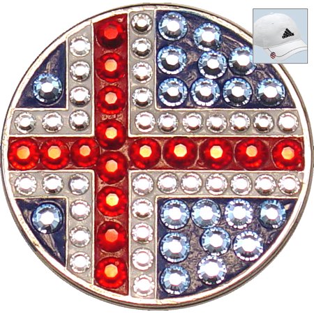 Fine crystal encrusted golf ball marker hat clips made with 100% genuine Swarovski crystals. Featuring unique, contemporary and classic designs. Each hat clip set comes with a black velvet carrying pouch. Bella are one of the global players in the luxury golf accessories market. The entire clip is sparkling clear crystals. The crystal collection products are made exclusively with Swarovski Crystal components. Swarovski crystals feature unparalleled, "diamond-like" brilliance. Each marker is magnetic and comes complete with the hat / visor clip.