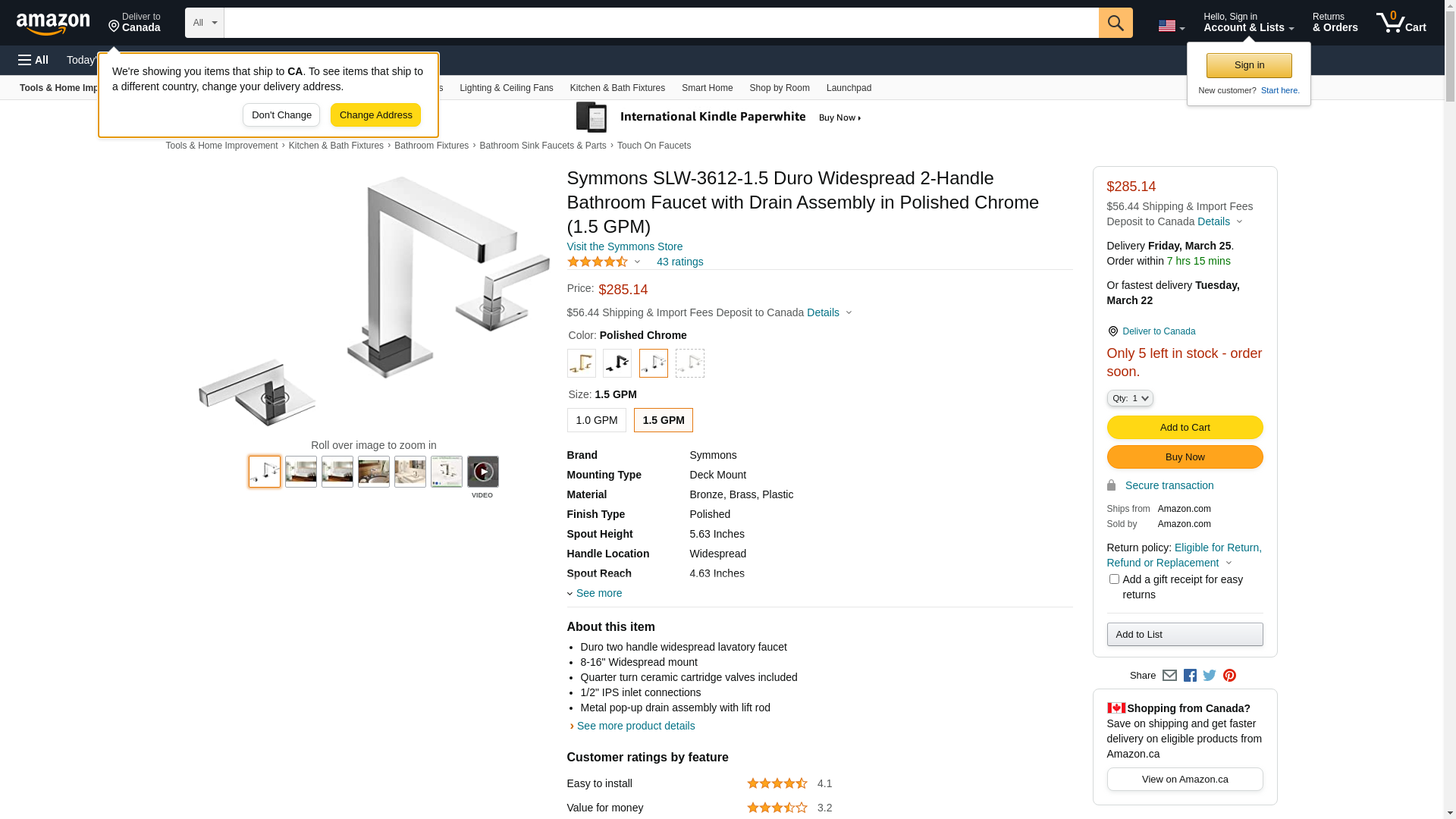 | northshorefaucets.com | SLW-3612-1.5 | 1 | 1 | 1 @ $403.33 | |