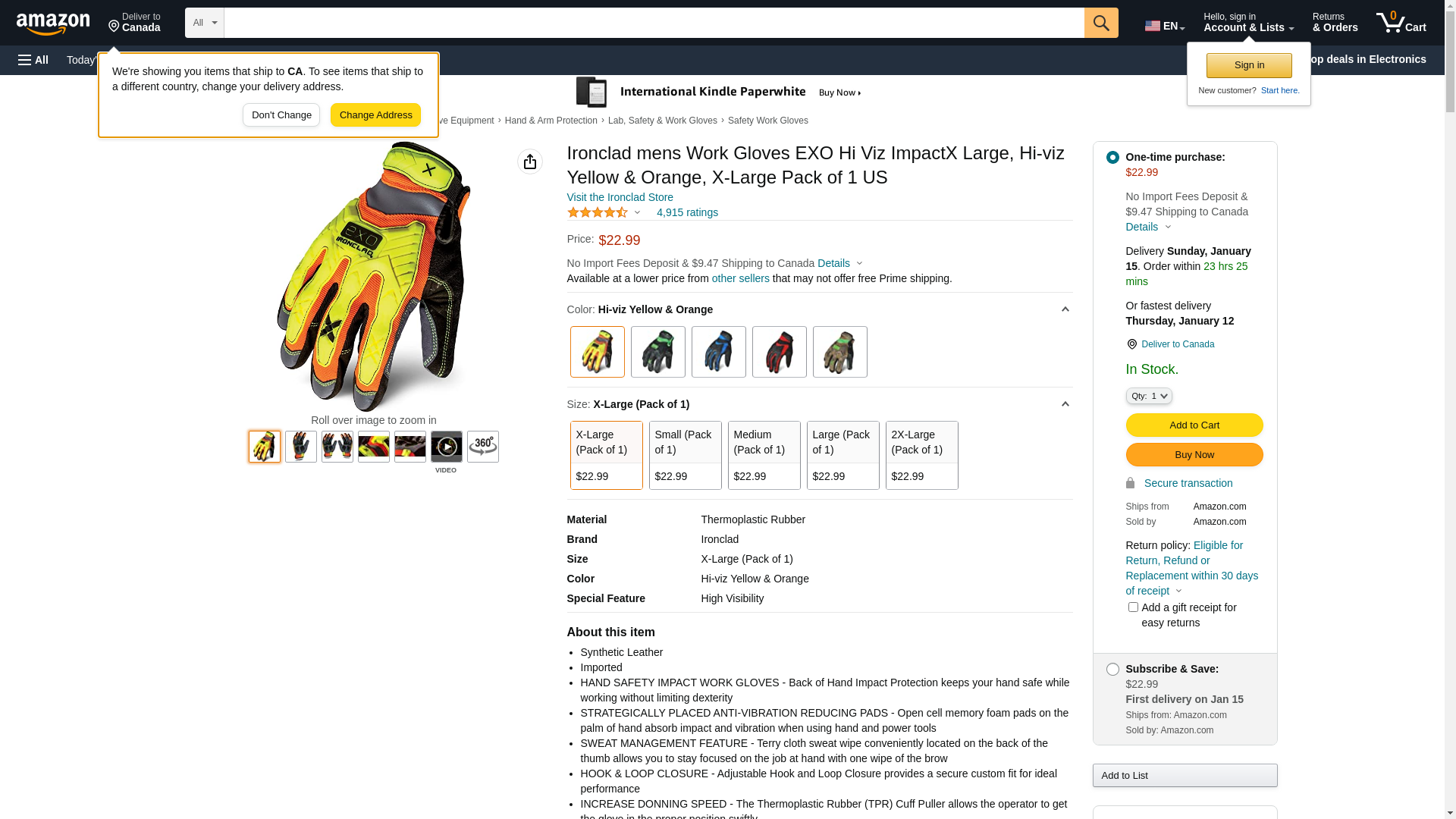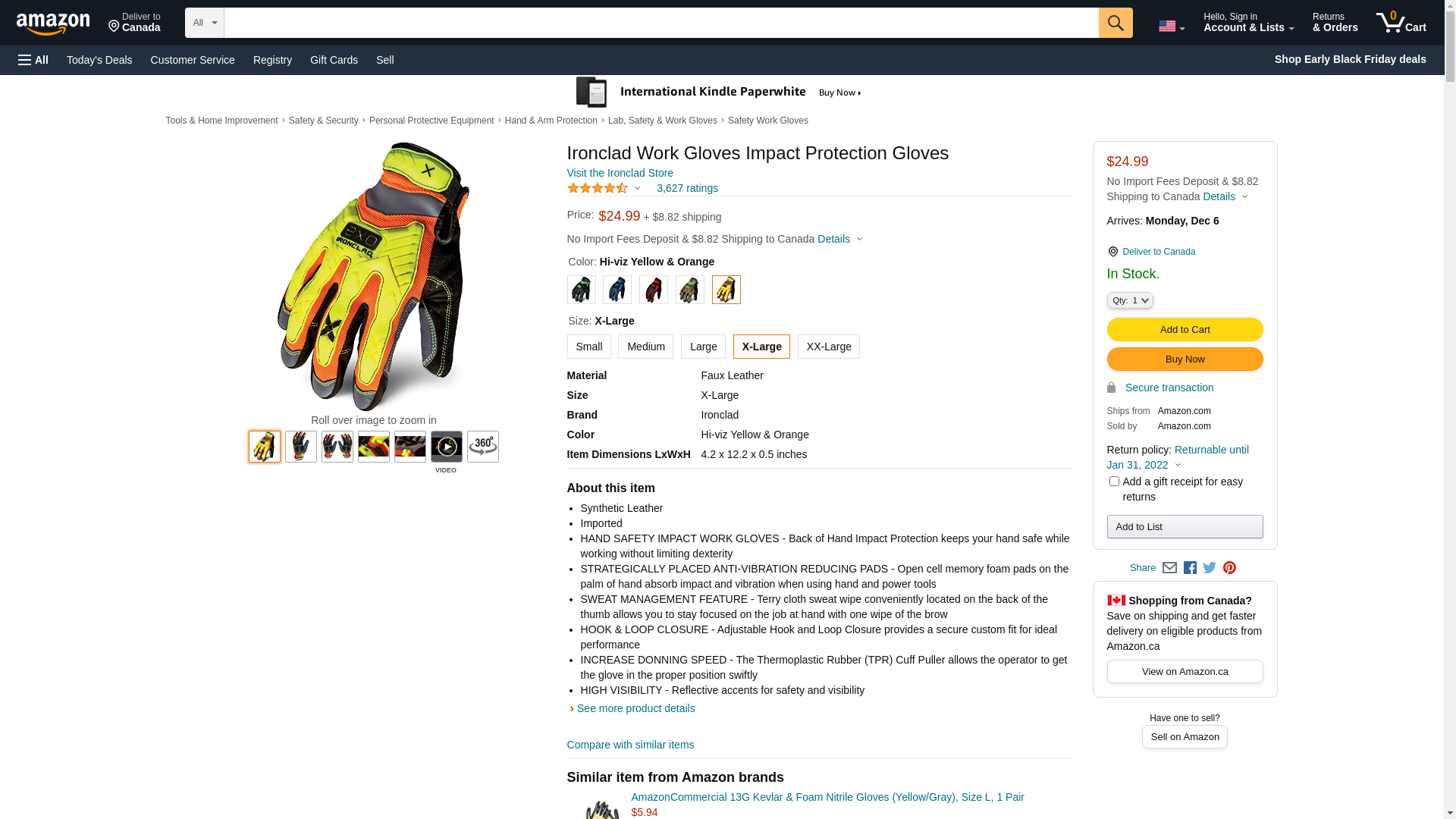 Ironclad mens Work Gloves EXO Hi Viz ImpactX Large, Hi-viz Yellow & Orange, X-Large Pack of 1 US