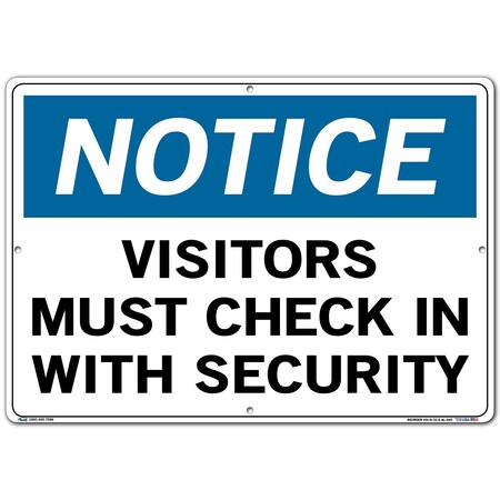Vestil SI-N-32-E-AL-040 Notice Sign Aluminum .040" Overall Size 20.5"W x 14.5"H Visitors Must Check in with security , 14.5" Height, 20.5" Wide, 0.04" Length