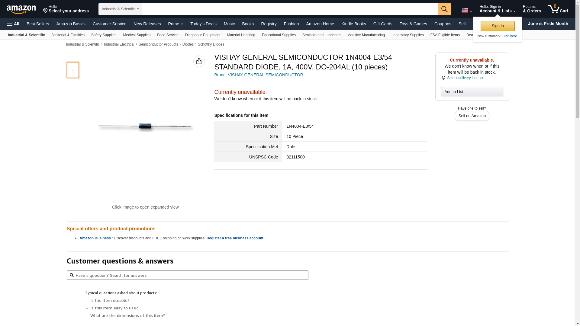| Part number | 1N4004-E3/54 |