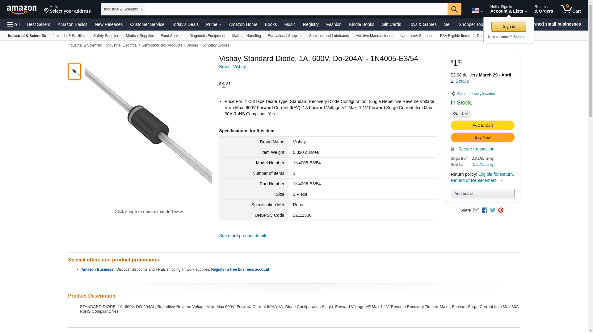 | Part number | 1N4005-E3/54 |