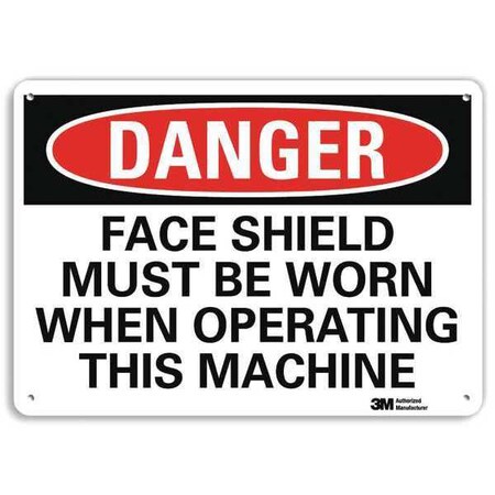 Smartsign U3-1455-RA_14X10"DANGER FACE SHIELD MUST BE WORN WHEN OPERATING THIS MACHINE" Reflective Recycled Aluminum Sign, 14" x 10"