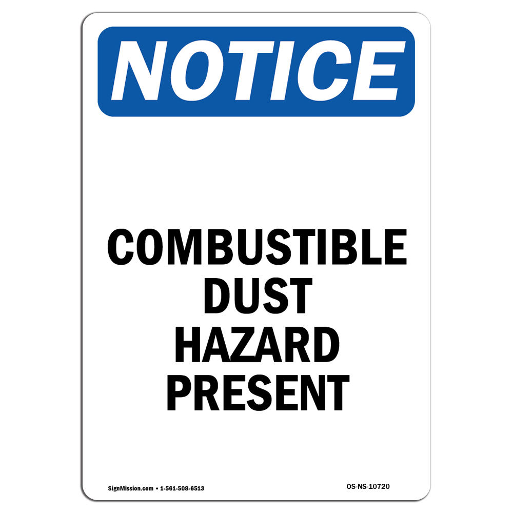 SignMission OS-NS-RD-1014-V-10720 OSHA Notice Sign - Combustible Dust Hazard Present