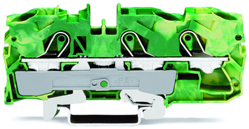 <p>This capable ATEX rated green and yellow ground terminal block, suitable for Ex e II applications, has been designed for use in areas where the presence of vapours and gases in the atmosphere could prove dangerous if ignited by an errant spark. This terminal block fits 35mm DIN Rails and incorporates secure cage clamp technology, and is around 30% smaller than standard terminal blocks.</p><p>Versatile, this 3 conductor WAGO TOPJOB S single level ground DIN rail mount terminal block with operating slot, enables easy connection when using an appropriate tool which remains in the operating slot until termination is complete. The clamping point is marked by the inserted tool and is held open, leaving hands free for wiring. This product is also available to order individually. For suitable endplates see part numbers 2010-1391 and 2010-1392.</p><p>The WAGO TOPJOB S range of DIN rail terminal blocks can also be fitted with marker to assist engineers and electricians when wiring and fault finding. Approvals ? Aex UL60079, ATEX EN60079, CCCEx - CNCA-C23-01, EAC - TP TC 012/2011, IECEx - IEC 60079, INMETRO ? IEC 60079</p>