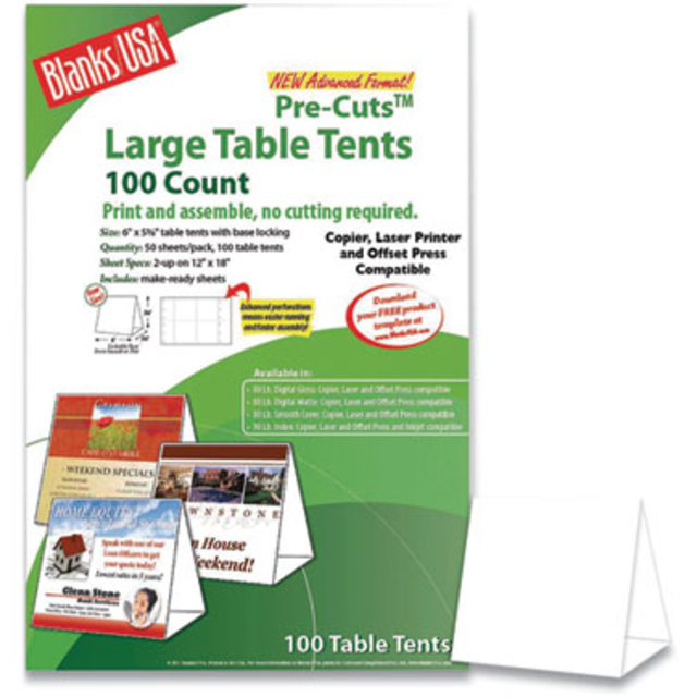Blanks USA White Table Tent, 12 x 18 inch - 2 per sheet -- 50 sheets per pack