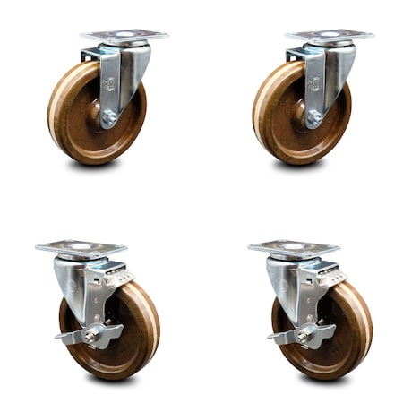 5 Inch High Temp Phenolic Wheel Swivel Top Plate Caster Set with 2 Brakes SCC