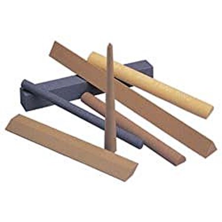 India stone is smooth-cutting, and aluminum oxide abrasive.<br /><br /> Item: Sharpening File<br /> Shape: Triangle<br /> Abrasive Material: Arkansas<br /> Grade: Ultra Fine<br /> Length: 3"<br /> Height: 1/4"<br /> Color: Translucent White<br />