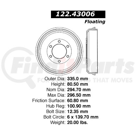 Centric Premium Brake Drum 122.43006 | 122.43006