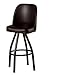 Swivel Bar Stool, upholstered premium bucket seat, 4° steel ball bearing swivel, single ring, black powder coat tempered frame, non-marring poly glides, espresso vinyl
