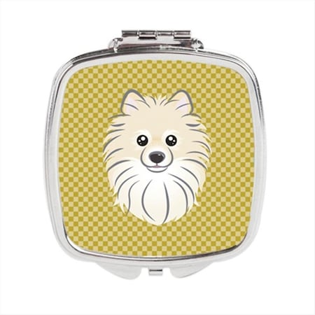 Caroline's Treasures BB1135SCM Tan Checkered Pomeranian Compact Mirror Decorative Travel Makeup Mirror for Women Girls Gifts Pocket Makeup Mirror Folding Handheld