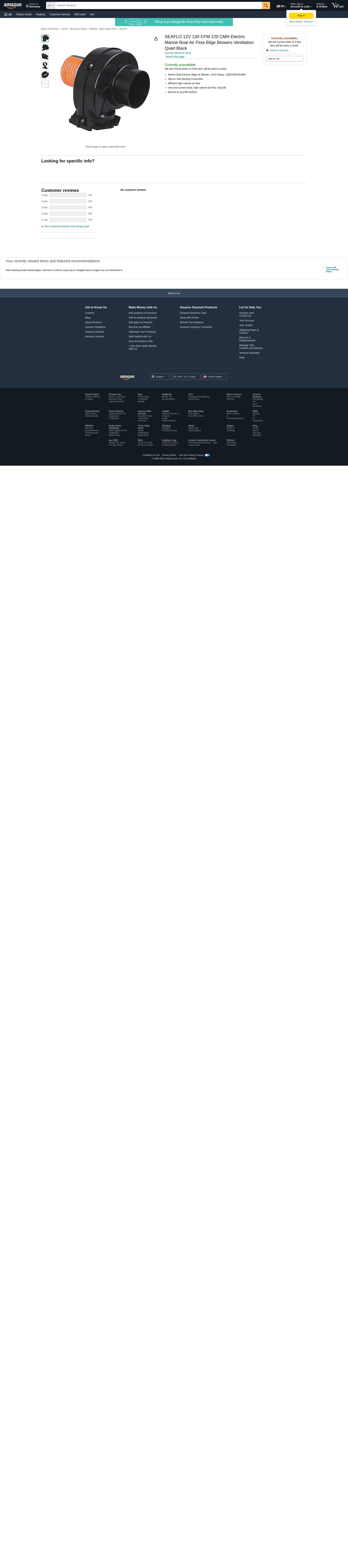 SEAFLO 12V 130 CFM 220 CMH Electric Marine Boat Air Flow Bilge Blowers Ventilation Quiet Black