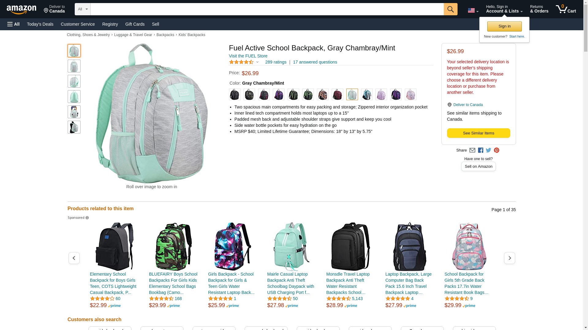 Fuel Active School Backpack, Gray Chambray/Mint