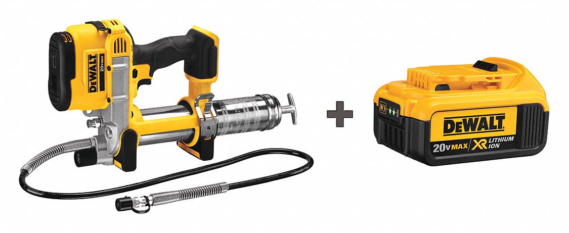 As an Amazon Associate, we earn from qualifying purchases. 20V MAX LI-ION GREASE GUN B W/BATT DEWALT . DCGG571B/DCB204 Gallery Attributes Brand name, Manufacturer name, ManufacturerDEWALT Attribute00Cordless Grease Gun with Battery Pack Attribute01, Voltage20 V Attribute02Cartridge, Bulk, Suction Attribute03Flex Hose Attribute0410,000 PSI Attribute0516 oz. Attribute0642" Attribute07Carbon Steel Attribute0817" Attribute09Up to NLGI #2 Attribute10, extendedQty, qtyInStock0 Attribute11LED Light Attribute12Battery Included Attribute13Li-ion Attribute14Pistol Grip Attribute1537.0 Attribute1614-1/2 oz. Attribute171 1/2 in Attribute18Silver Attribute195 oz Attribute208.0 lb. Attribute214.0 Ah Attribute22Lubricating Attribute23Shoulder Strap AttributeKey00Item AttributeKey01Voltage AttributeKey02Grease Gun Loading Method AttributeKey03Nozzle Extension Type AttributeKey04Max. Operating Pressure AttributeKey05Bulk Capacity AttributeKey06, length_AttribHose Length AttributeKey07Tube Material AttributeKey08Tool Length AttributeKey09Grease Type AttributeKey10Number of Speeds AttributeKey11Features AttributeKey12Battery Included / Bare Tool AttributeKey13Battery Type AttributeKey14Grease Gun Handle Style AttributeKey15Strokes per Oz. AttributeKey16Cartridge Capacity AttributeKey17Pipe Length AttributeKey18Tube Color AttributeKey19Volume per Minute AttributeKey20Tool Weight AttributeKey21Battery Capacity AttributeKey22Application AttributeKey23Includes DimensionUnitinch Extra Product Name20V MAX LI-ION GREASE GUN B W/BATT UNSPSC27112901 Weight1.0 WeightUnitlbs deadPageTrue length42.0 moq, multiple1 MPNDCGG571B/DCB204 originalCurrency{'currency': 'CAD'} SKUBLD-Q1BARETOOL15 Distributor offers SellerSKUMOQIn stockMultiplePrices grainger.caBLD-Q1BARETOOL1511