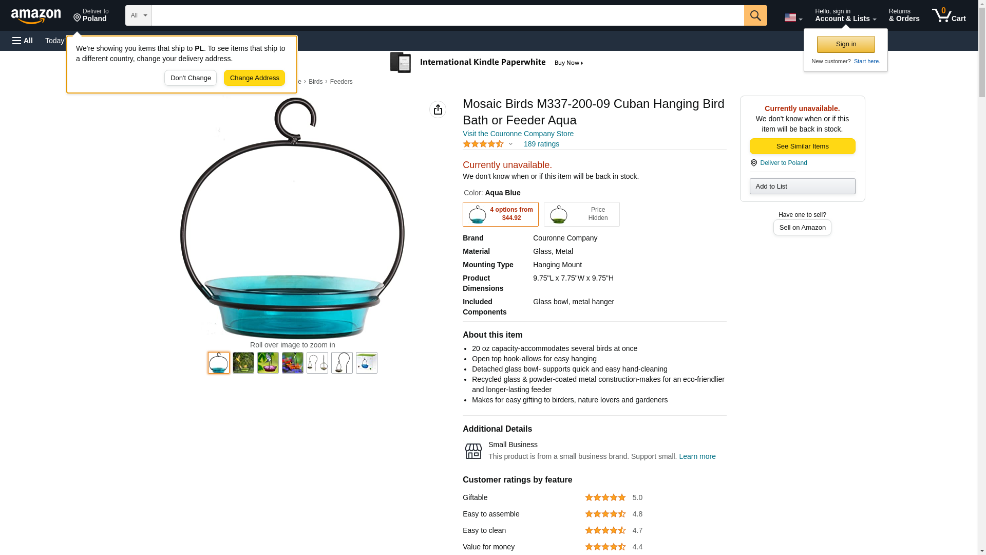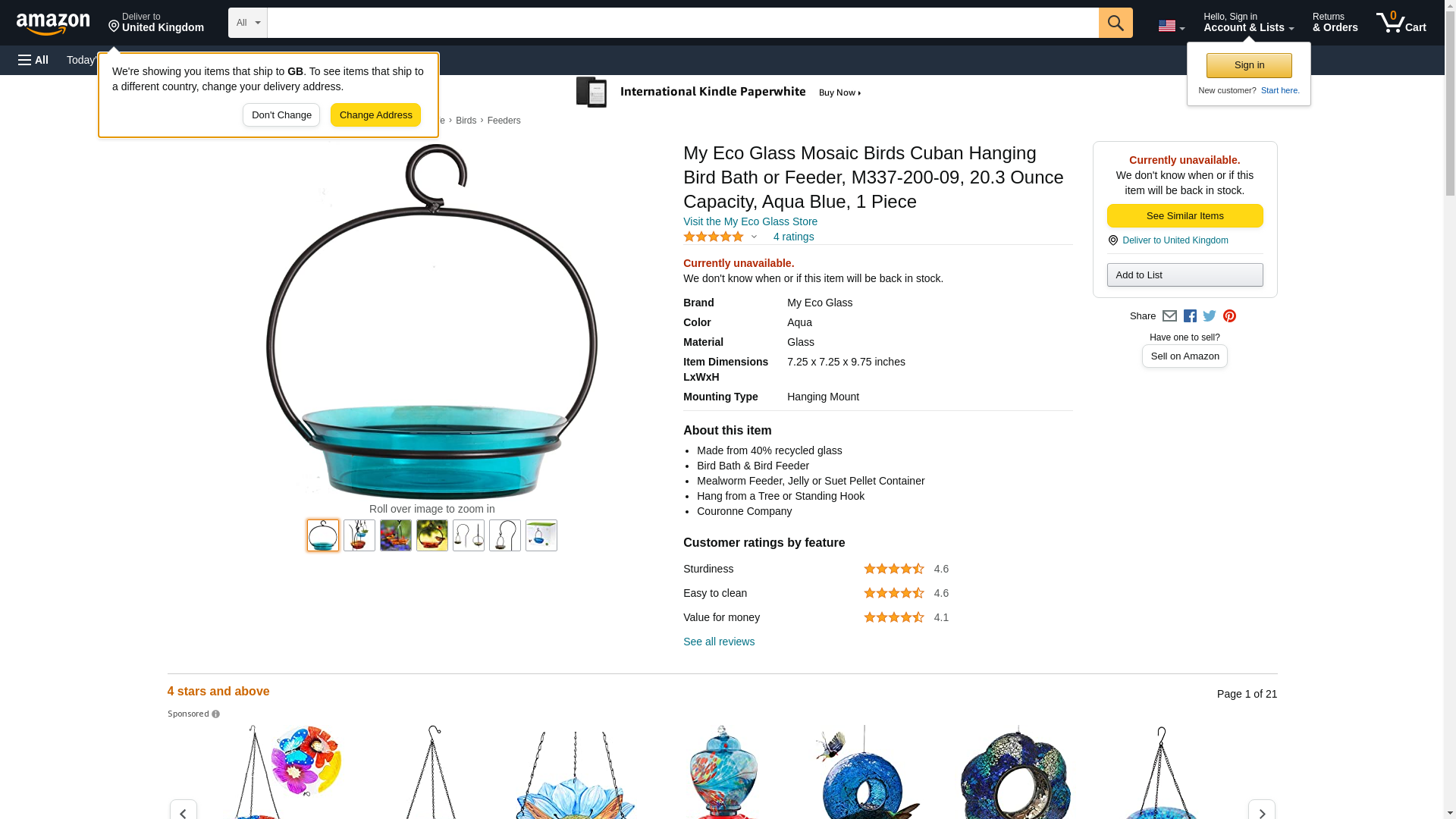 Mosaic Birds M337-200-09 Cuban Hanging Bird Bath or Feeder Aqua: Maxedbuy.com