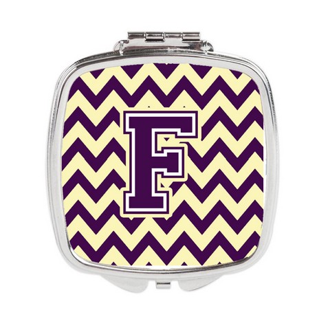 Letter F Chevron Purple and Gold Compact Mirror