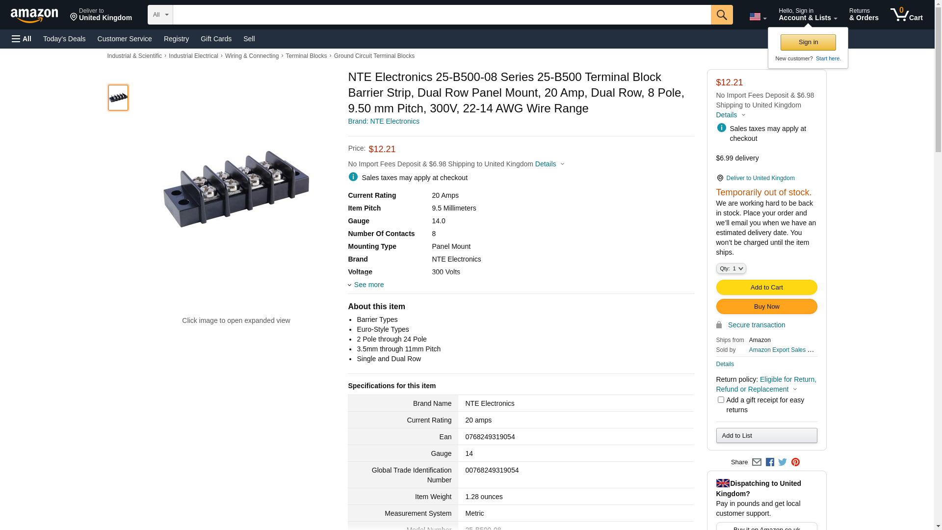 | ntepartsdirect | 25-B500-08 | 1 | -2 | 1 | 1 @ $4.79, 5 @ $4.70, 10 @ $4.55 |
