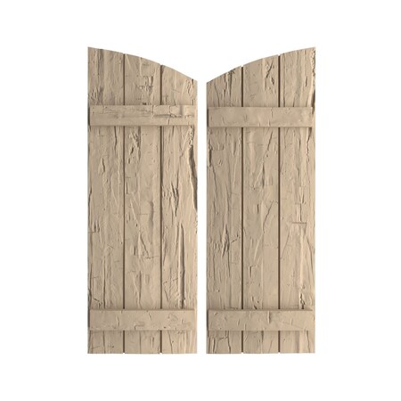 Ekena Millwork SHUBJL16X42HHPR (36 1/2" Low Side) Timberthane Three Joined Board-n-Batten w/Elliptical Top Faux Wood Shutters (Per Pair), Primed Tan, 16 x 42" H