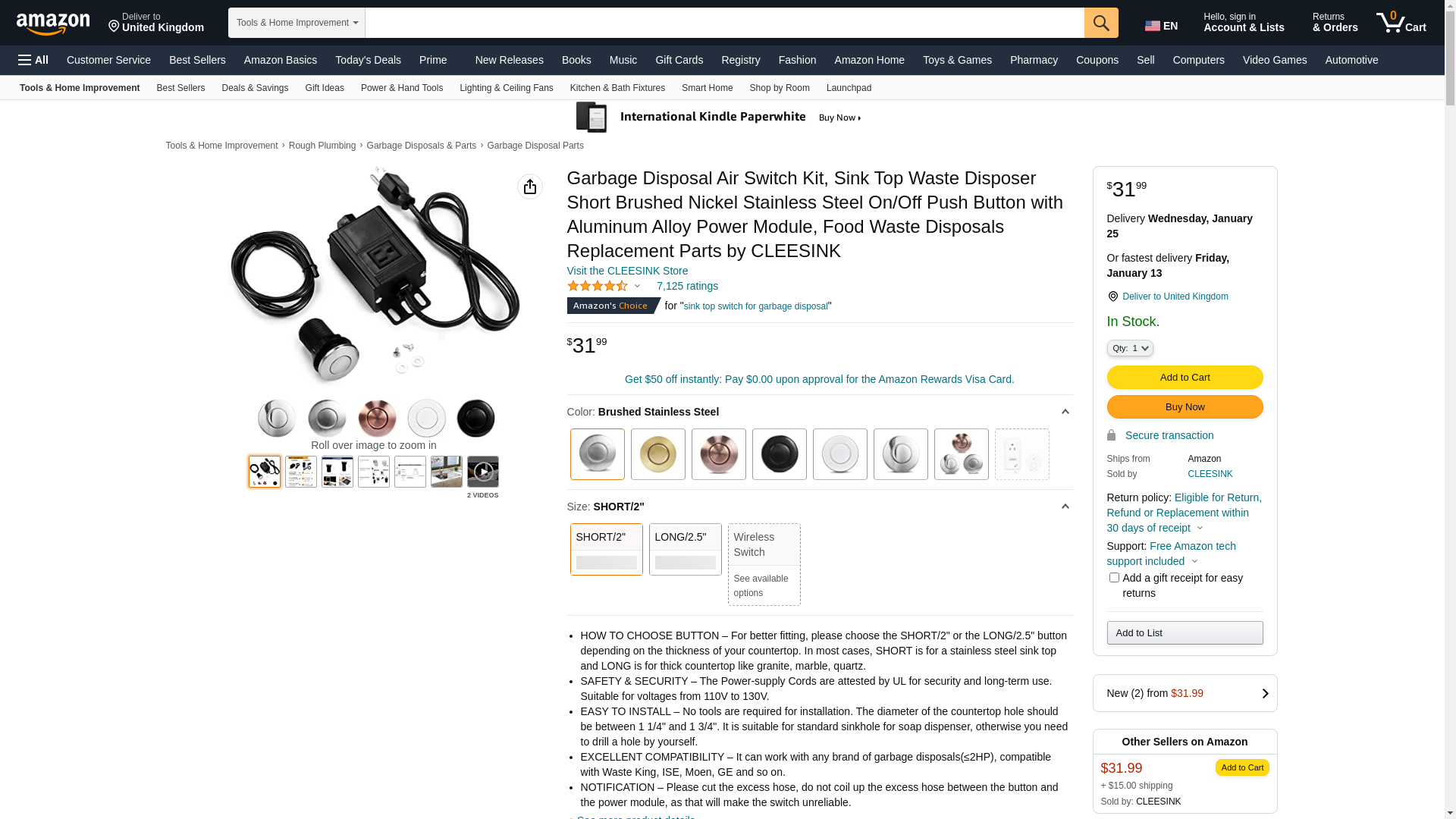 Sink Top Air Switch Kit Air Button for Garbage Disposal with Aluminum Alloy Power Module (SHORT BRUSHED STAINLESS STEEL BUTTON) by CLEESINK: Maxedbuy.com
