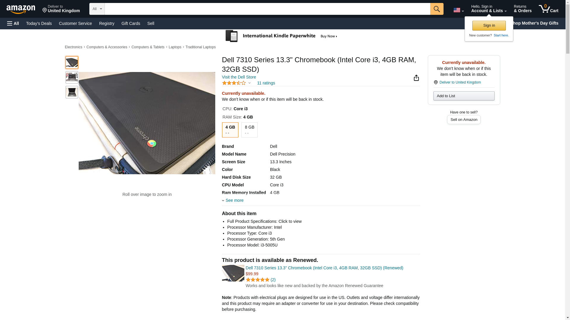 Dell 7310 Series 13.3" Chromebook (Intel Core i3, 4GB RAM, 32GB SSD)