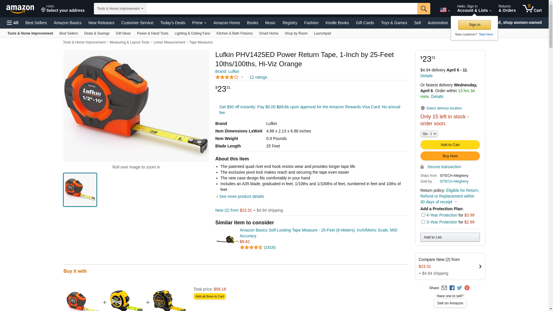 | Feature | This new tape measure from Lufkin features a hi-visibility orange case with a black co-molded rubber grip, a 9 ft. standout allows for easy and efficient measuring Patented quad rivet end hook resists wear and provides longer tape life |